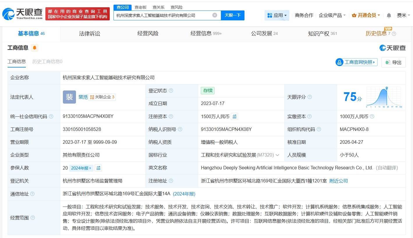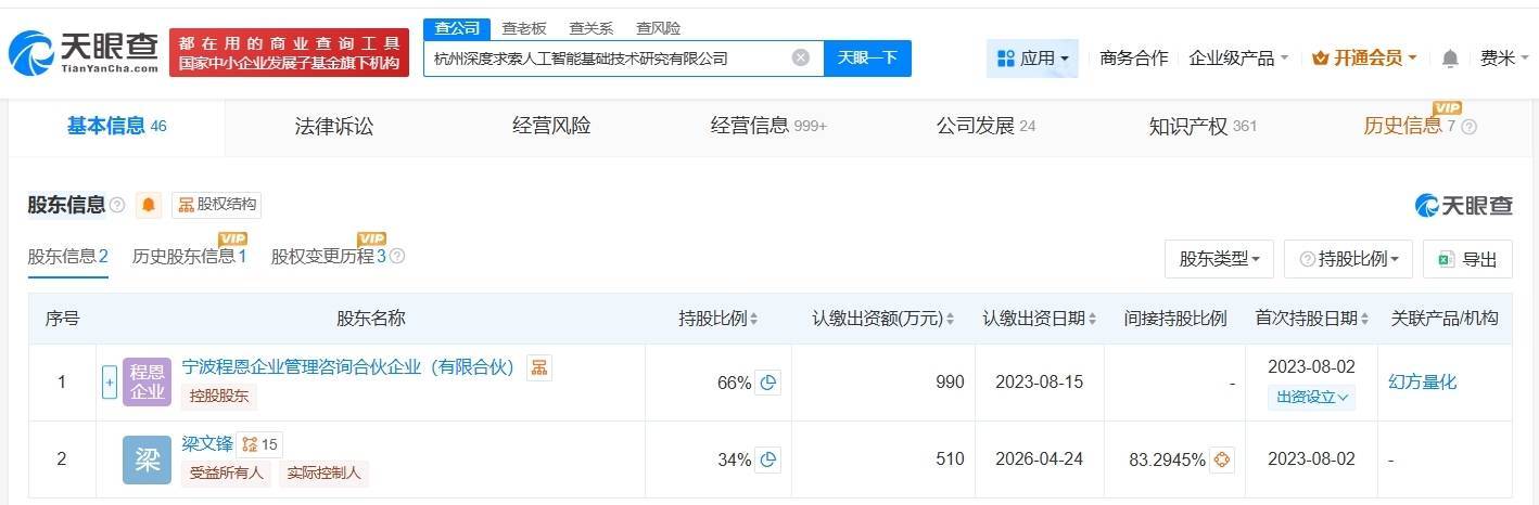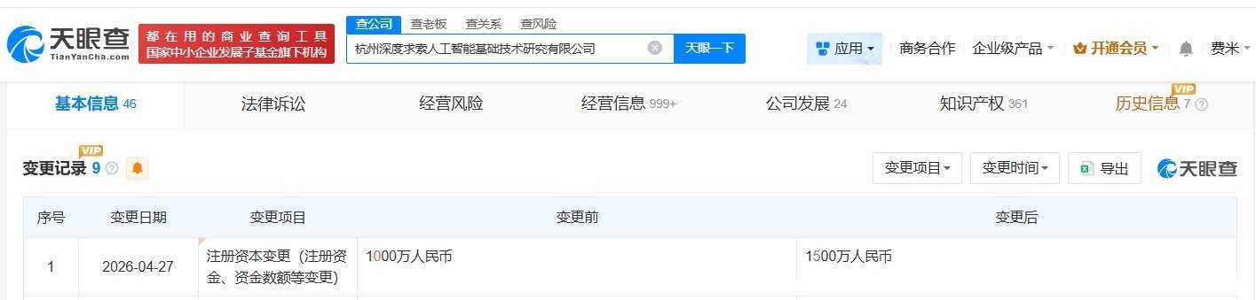 南方财经4月28日电,天眼查App显示,近日配资网站导航指南,DeepSeek关联公司杭州深度求索人工智能基础技术研究有限公司发生工商变更配资网站导航指南,注册资本由1000万人民币增至1500万人民币,增幅50%。该公司成立于2023年7月,法定代表人为裴湉,经营范围包括工程和技术研究和试验发展、软件开发、计算机系统服务等,由宁波程恩企业管理咨询合伙企业(有限合伙)、梁文锋共同持股。